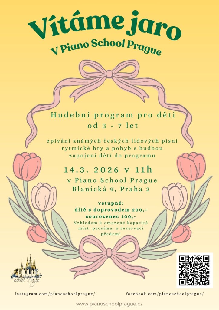 Spring is just around the corner, and we will welcome it together with music! We invite all young singers aged 3–7 to join us for a joyful music program full of Czech folk songs, rhythm games, and movement. Children will sing well-known melodies, learn simple dances, and experience the joy of making music together. You can find more information about the program here.