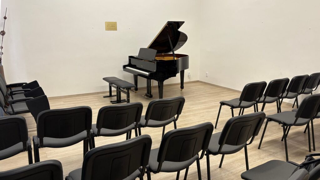 V naší klavírní škole najdete tři učebny, ve kterých probíhá pravidelná výuka. Jedna z nich je také krásným komorním koncertním sálem s kapacitou cca 30 posluchačů, kde se pravidelně konají naše koncerty a hudební setkání. Když se v učebnách právě nehraje, rádi je nabídneme k pronájmu – ať už na cvičení, menší koncerty nebo semináře, které oživí hudební atmosféru našeho prostoru.
